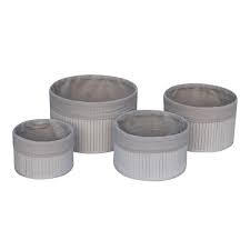 Cestos Redondos de Tela/Bamboo Gris 4 Piezas